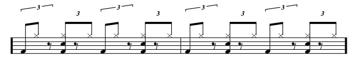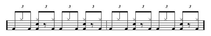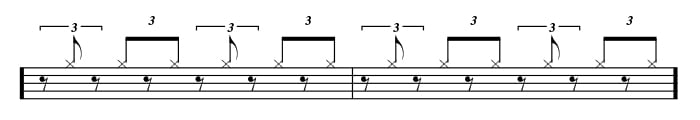 Let’s start with the hi-hat pattern. We’ll begin by playing the second note of the first triplet, then we’ll play every other triplet going forward.