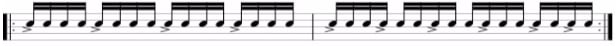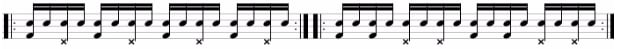 Most drummers that I meet have never had luck developing the weak hand but they push the tempo too fast and get tense. We need to bring the tempo down to a manageable rate and play relaxed. The most important thing here is the amount of notes that we are playing and that they are all played tension free. Obviously if we play too slow there will be minimal carryover effect, but what I have found with myself and my students is that if you are playing from 50-70% of your top speed tension free, you will see results fairly quickly with consistent practice.
