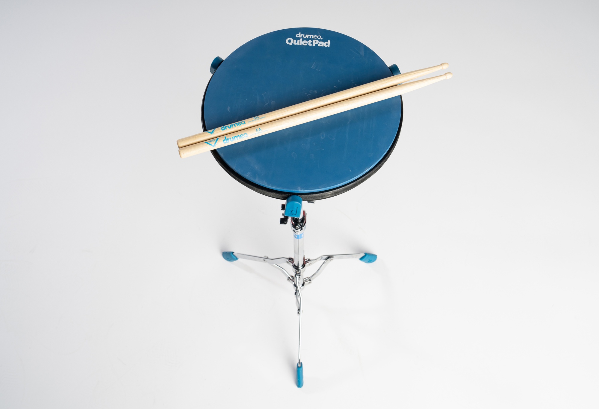 The basket and feet are in custom Drumeo blue so you’ll never confuse your PadStand for your snare stand.