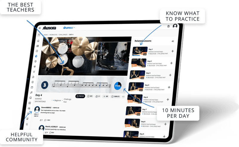 Drumeo is the perfect companion for advanced drummers, giving you access to artist courses so you can gain insights and inspiration from the legends – with 200+ artist courses on a variety of topics. Plus, you’ll get note-for-note transcriptions for popular songs and practical playback tools, so you can take on any new challenge with confidence.